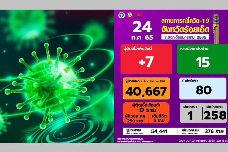 ข้อมูลผู้ติดเชื้อรายใหม่วันนี้ 7ราย ได้แก่ อาทิ 1.เมืองร้อยเอ็ด 2 ราย 2.เกษตรวิสัย 1 ราย 3.ธวัชบุรี 1 ราย 4.โพนทอง 1 ราย