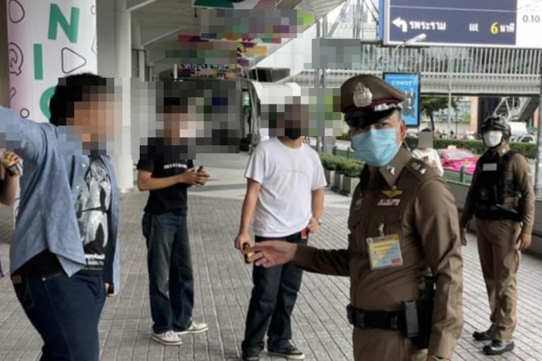 เมื่อเจ้าหน้าที่เดินทางไปตรวจสอบพบนักศึกษา 5 คน กำลังยืนจับกลุ่มอยู่บริเวณดังกล่าว เจ้าหน้าที่จึงแสดงตัวเป็นขอตรวจคัน ก่อนพบอาวุธมีดชุกช่อนอยู่ภายในกางเกงของนักศึกษาทั้ง 5 คน รวมของกลางอาวุธมีด 5 เล่มเจ้าหน้าที่จึงคุมตัวทั้งหมดไปสอบสวนที่สน.ปทุมวัน พร้อมยึดของกลางอาวุธมีดไว้เป็นหลักฐาน โดยทั้งหมดให้การว่าพกไว้เพื่อป้องกันตัว เจ้าหน้าที่จึงแจ้งข้อกล่าวหา พกอาวุธมีดไปในเมืองหมู่บ้านหรือทางสาธารณะ ก่อนส่งพนักงานสอบสวนดำเนินคดีต่อไป