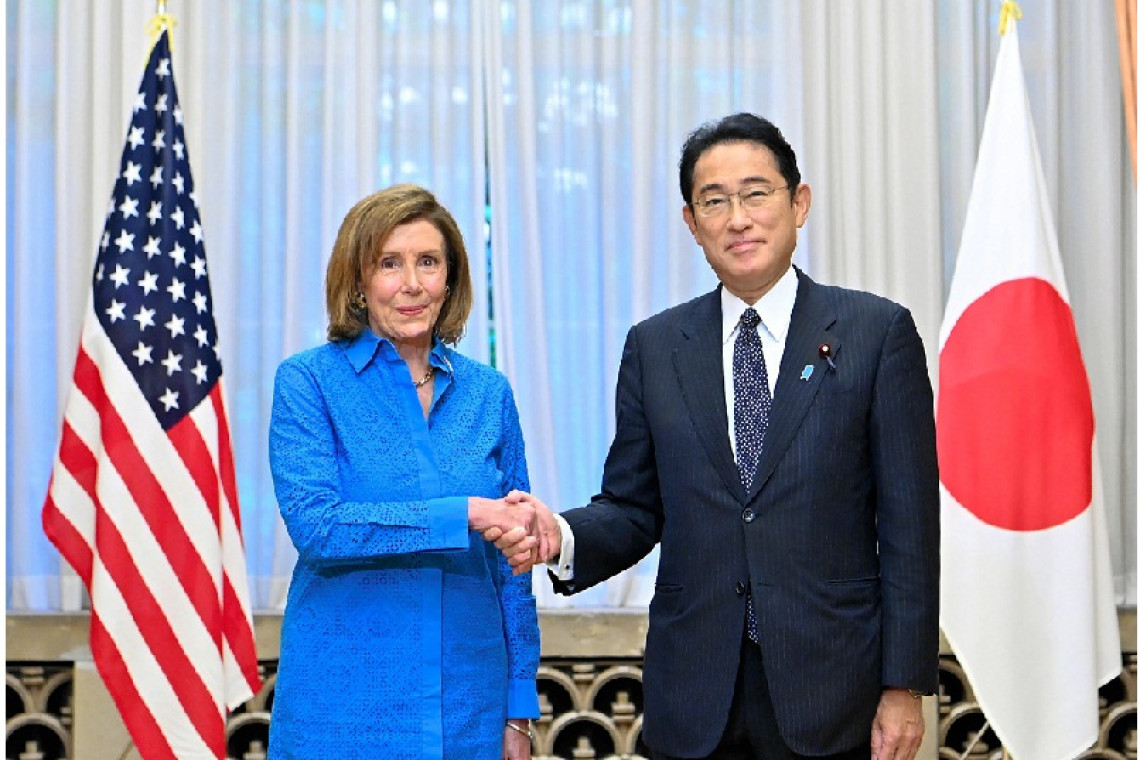 รายงานข่าวแจ้งว่า นางเพโลซี ได้พบปะกับนายฟูมิโอะ คิชิดะ นายกรัฐมนตรีญี่ปุ่น ที่ทำเนียบนายกรัฐมนตรี กรุงโตเกียว เมืองหลวงของญี่ปุ่น