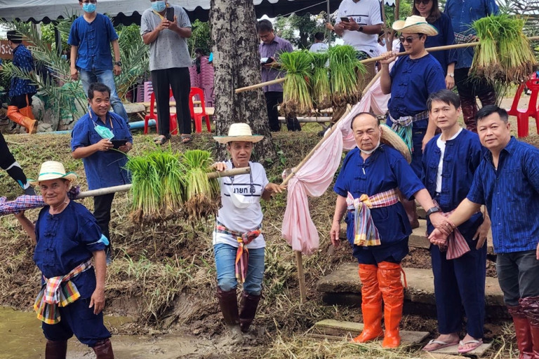 วันที่ 5 ส.ค.65 ที่ฟาร์มชุมชน ต.หนองปลาไหล อ.วังทรายพูน จ.พิจิตร นายนราพัฒน์ แก้วทอง ส.ส.แบบบัญชีรายชื่อ รองหัวหน้าพรรคประชาธิปัตย์ภาคเหนือ ,นายไพฑูรย์ แก้วทอง อายุ 85 ปี ราษฎรอาวุโสของชาวจังหวัดพิจิตร ได้ร่วมกับผู้นำชุมชนและพี่น้องเกษตรกรในเขต ต.หนองปลาไหล ร่วมทำกิจกรรม “ปลูกวันแม่ เกี่ยววันพ่อ” เพื่อเป็นการสืบสานอนุรักษ์วัฒนธรรมประเพณีการลงแขกดำนาปลูกข้าวซึ่งมีชาวบ้านมาร่วมในกิจกรรมครั้งนี้กว่า 300 คน