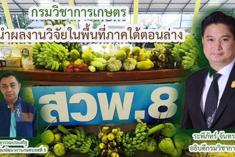 นายระพีภัทร์ จันทรศรีวงศ์ อธิบดีกรมวิชาการเกษตร เปิดเผยว่า สำนักวิจัยและพัฒนาการเกษตรเขตที่ 8 เป็นหน่วยงานในภูมิภาคของกรมวิชาการเกษตร ที่รับผิดชอบพื้นที่ 7 จังหวัดภาคใต้ตอนล่าง โดยมีภารกิจสำคัญ คือการวิจัยและพัฒนาเทคโนโลยีที่เหมาะสมกับสภาพพื้นที่ นอกจากนั้นจะยังมีงานผลิตพันธุ์พืช งานบริการตรวจสอบ วิเคราะห์ ปัจจัยการผลิต งานตรวจสอบรับรองมาตรฐานการผลิตพืช งานควบคุมกำกับตาม พรบ. งานพัฒนาในโครงการพระราชดำริ และการบริการวิชาการด้านพืชและปัจจัยการผลิตต่างๆ