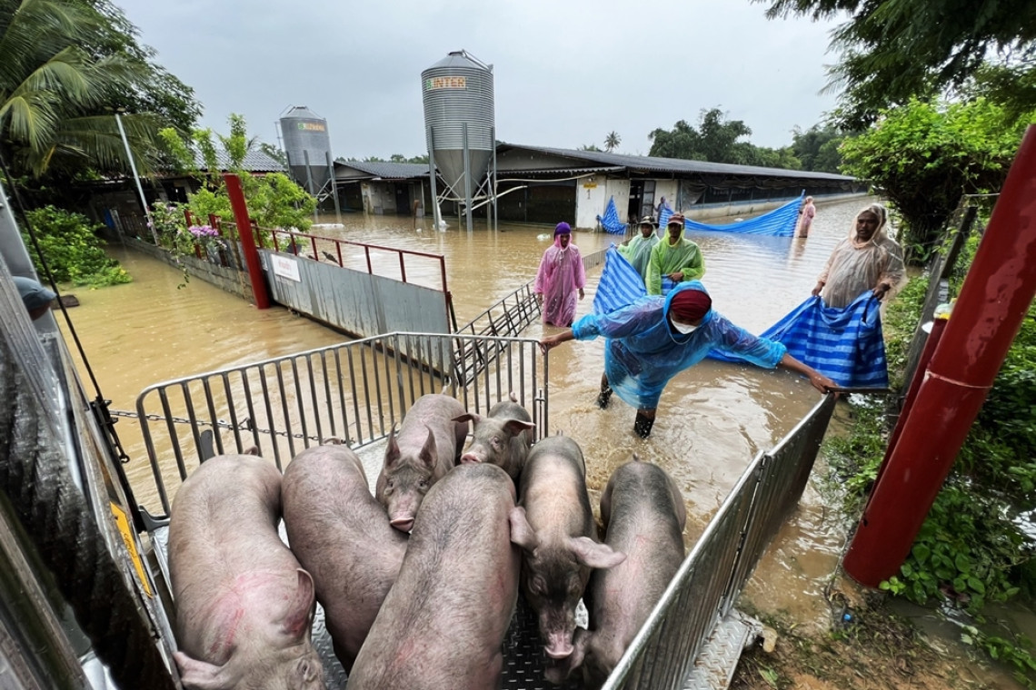 ห้วยแร้ง ฝนตกหนักติดต่อกันหลายวัน น้ำในคลองห้วยแร้งเอ่อล้นท่วมฟาร์มหมู-บ้านประชาชน เจ้าของฟาร์มเร่งย้ายหมู 1,400 ตัว ไปที่ปลอดภัย ขณะ นพค.14 ส่งจนท. ช่วยเหลือเบื้องต้น