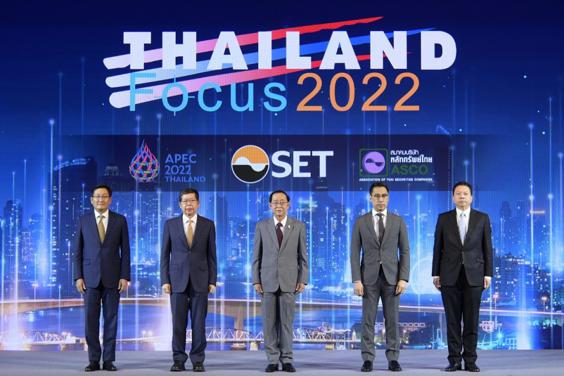 ตลาดหลักทรัพย์ฯ จัดงาน “Thailand Focus 2022 : THE NEW HOPE” ตอกย้ำศักยภาพและชี้แนวทางขับเคลื่อนของตลาดทุนและเศรษฐกิจไทยให้เดินหน้าต่อภายใต้บริบทใหม่ โดยมี รมว.คลัง พร้อมด้วยผู้บริหารระดับสูงแวดวงเศรษฐกิจ ร่วมสร้างความเชื่อมั่นถึงความพร้อมของไทย ตั้งแต่ระดับยุทธศาสตร์ประเทศ สู่การขับเคลื่อนอย่างบูรณาการโดยภาคตลาดเงินตลาดทุน และการปรับกลยุทธ์ของธุรกิจและเปลี่ยนสู่อุตสาหกรรมอนาคตที่ยั่งยืน พร้อมด้วยผู้บริหารระดับสูงของบริษัทจดทะเบียน (บจ.) 124 บริษัท ร่วมให้ข้อมูลกับผู้ลงทุนสถาบัน 161 ราย จาก 76 สถาบันทั่วโลก สะท้อนการที่ผู้ลงทุนเห็นโอกาสและยังเชื่อมั่นต่อเศรษฐกิจและการลงทุนในประเทศไทย