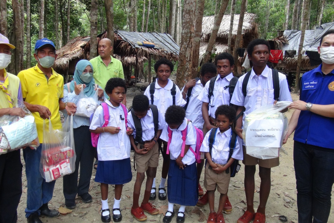 ทางอำเภอ จึงทำโครงการที่จะมอบ ชุดนักเรียน กระเป๋า อุปกรณ์การเรียนให้น้องๆไปเรียนกับเพื่อนๆซึ่งอุปกรณ์ทั้งหมดนี้ได้จากน้ำใจของพี่น้องชาวอำเภอมะนังที่ร่วมกันบริจาคให้เป็นอุปกรณ์การเรียนของน้องๆ มันนิ ที่จะไปเรียน นอกจากนี้เรายังให้สิทธิ์พื้นฐานด้านสาธารณสุข ด้วยมีการดูแลฉีดวัคซีนและตรวจติดตามสุขภาพให้ความรู้เรื่องการดูแลบุตรของชนเผ่ามันนิอีกด้วย ส่วนนักเรียนที่จะไปเรียนมีจำนวน 8 คน ส่วนเส้นทางจากทับไปโรงเรียนก็หลายกิโลเมตรต้องเดินเท้าเข้าไปจากตีนเขา ประมาณ 1-2 กิโลเมตร จะมีกำนันผู้ใหญ่บ้านและเรียนมาคอยรับส่งจากตีนเขาไปที่โรงเรียนโดยอาศัยมอเตอร์ไซค์ในการรับส่ง