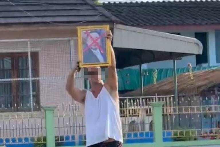 สำหรับชาวต่างชาติคนดังกล่าว เมื่อช่วงเช้าวันที่ 31 ส.ค.ได้ไปชูรูปเดียวกันตรงบริเวณ สี่แยกออคิด ถ.สุขุมวิท อ.เมือง จ.ระยองมาแล้วครั้งหนึ่ง โดยชูไม่นานก็ขึ้นรถหายไปเหมือนเช่นวันนี้
