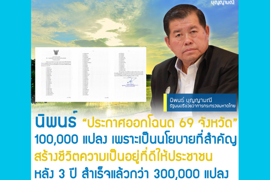นิพนธ์ฯประกาศออกโฉนด 69 จังหวัด 100,000 แปลง เพราะเป็นนโยบายสำคัญที่สร้างชีวิตความเป็นอยู่ที่ดีให้ประชาชน หลังสามปีสำเร็จแล้วกว่า 300,000 แปลง