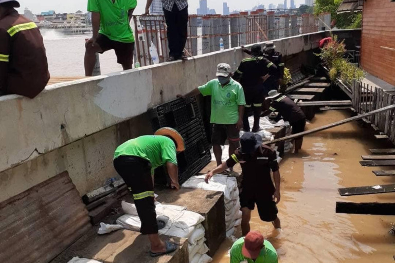 สำหรับชุมชนที่อยู่นอกแนวป้องกันน้ำท่วม ต้องติดตามสถานการณ์น้ำเหนือ เวลาน้ำขึ้นเต็มที่ในแต่ละวันอย่างใกล้ชิด บางชุมชนอาจจะได้รับผลกระทบเรือวิ่งผ่านไปมาด้วยความเร็วทำให้แรงคลื่นกระทบพื้นบ้าน ซึ่งกรุงเทพมหานคร ได้ประสานขอความร่วมมือไปยังกรมเจ้าท่าช่วยตรวจสอบ กำชับและใช้มาตรการเรื่องการเดินเรือเพื่อไม่ให้เกิดผลกระทบบ้านเรือนของประชาชน