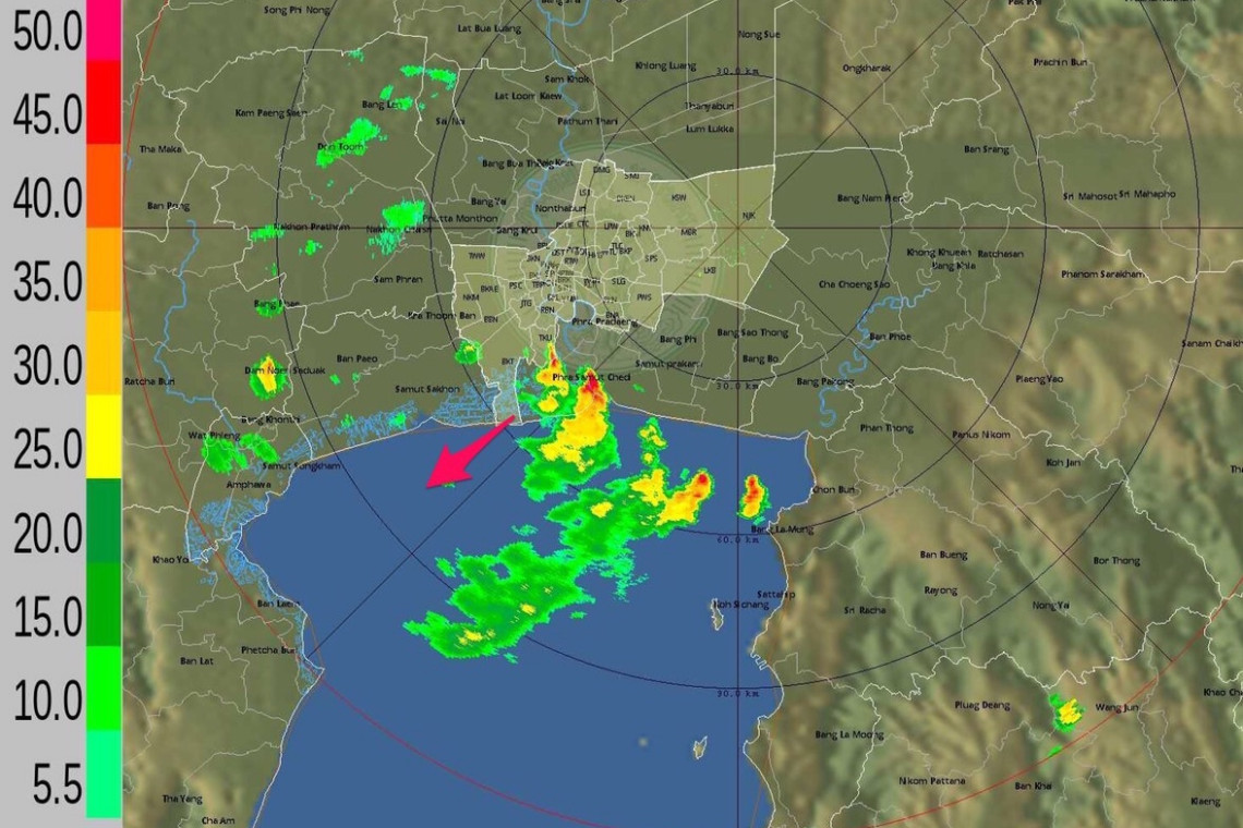 จากนั้นเวลา 12.00 น / พื้นที่ กทม. พบกลุ่มฝนเล็กน้อยถึงปานกลาง อ.พระสมุทรเจดีย์ อ.พระประแดง อ่าวไทย เมืองสมุทรปราการต่อเนื่องเขตทุ่งครุ ราษฎร์บูรณะ บางส่วนเขตบางขุนเทียน เคลื่อนตัวทิศเหนือ แนวโน้มคงที่ / อุณหภูมิที่สำนักการระบายน้ำ 29 องศาเซลเซียส ความชื้นสัมพัทธ์ 79%