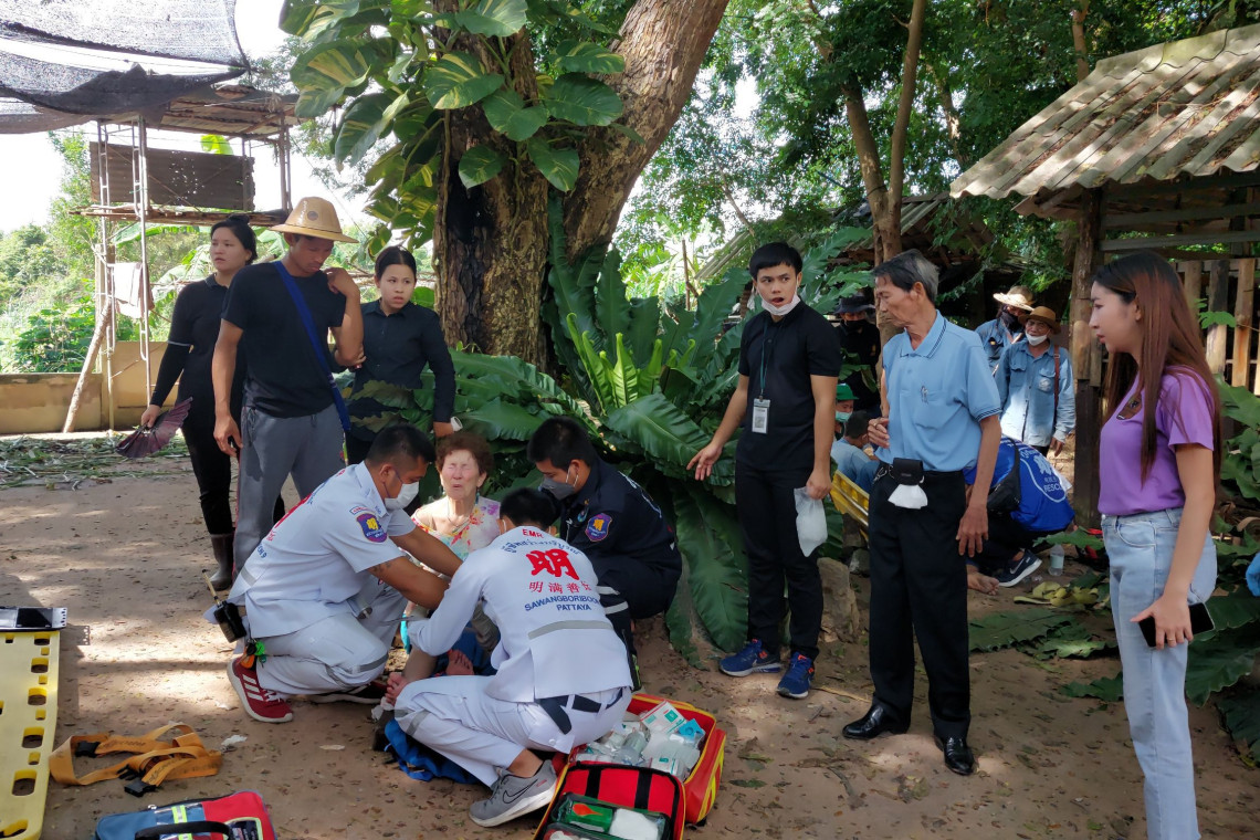 เวลา 14.30 น. วันที่ 5 ก.ย. 65 ศูนย์วิทยุหน่วยกู้ภัยสว่างบริบูรณ์เมืองพัทยา รับแจ้งเหตุมีนักท่องเที่ยวตกจากหลังช้าง 2 ราย ที่บริเวณหมู่บ้านช้างพัทยา ม.7 ต.หนองปรือ อ.บางละมุง จ.ชลบุรี หลังรับแจ้ง จึงประสานหน่วยกู้ชีพสว่างบริบูรณ์เมืองพัทยา รุดตรวจสอบและให้การช่วยเหลือ