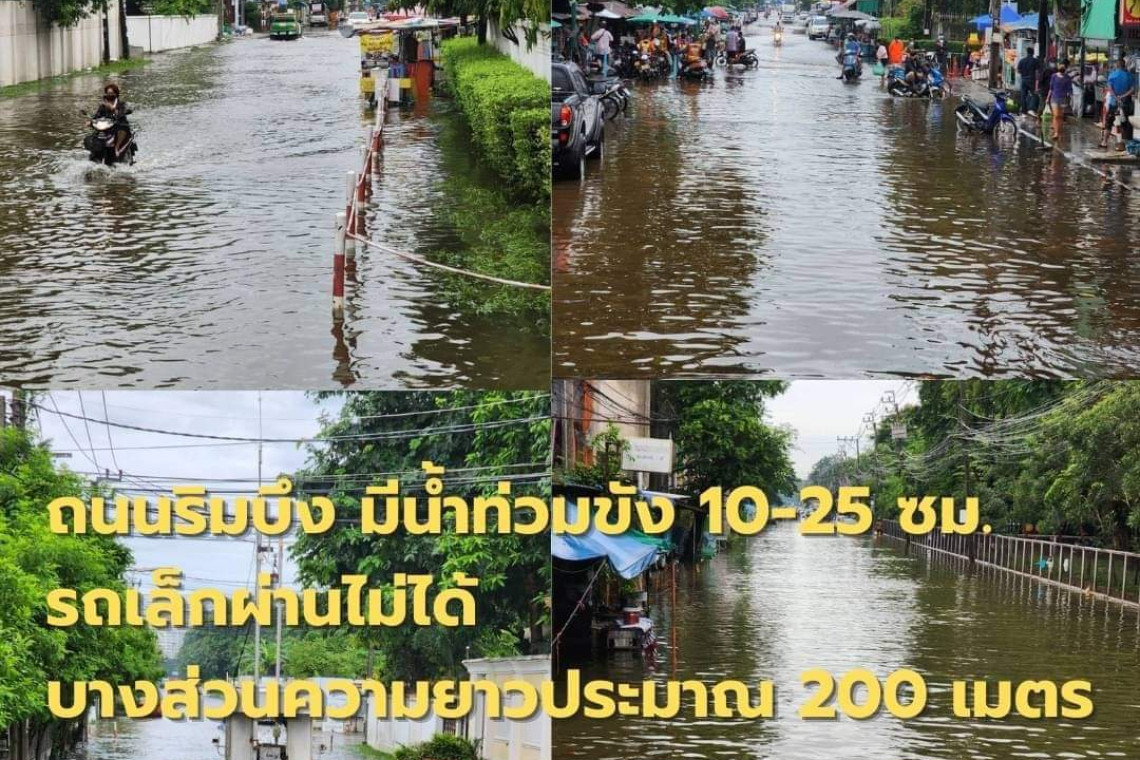 รอบบึงเมืองทอง ยังมีน้ำท่วม 10-25 ซม. รถเล็กผ่านไม่ได้