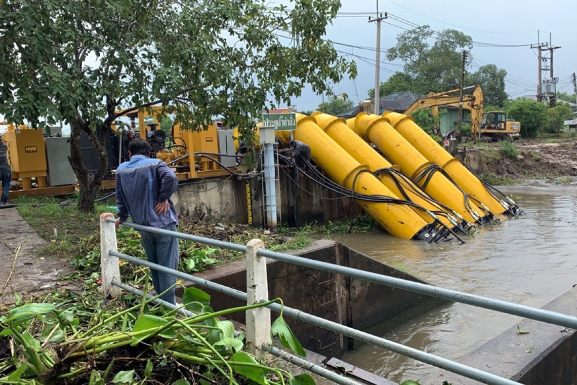 กรมชลประทาน ระดมเครื่องสูบน้ำติดตั้งเพิ่มเติมที่สถานีสูบน้ำท่าถั่ว จ.ฉะเชิงเทรา เร่งระบายน้ำในคลองประเวศบุรีรมย์ ออกสู่แม่น้ำบางปะกงและทะเลอ่าวไทยให้เร็วที่สุด ลดผลกระทบน้ำท่วมในเขตกทม.ฝั่งตะวันออก พร้อมรองรับน้ำฝนที่จะตกลงมาอีก