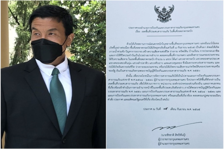 (15 ก.ย.65) นายชัชชาติ สิทธิพันธุ์ ผู้ว่าราชการกรุงเทพมหานคร ได้ออกประกาศกองอำนวยการป้องกันและบรรเทาสาธารณภัยกรุงเทพมหานคร