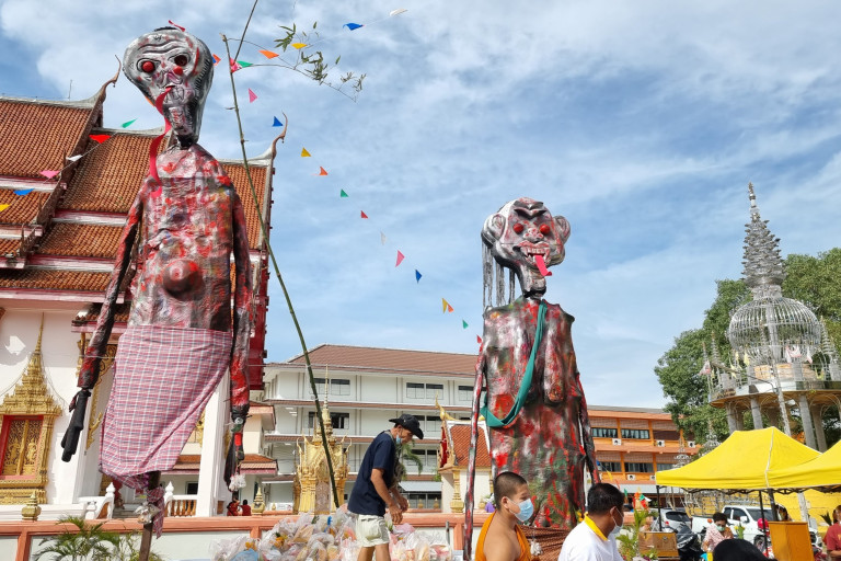 บรรยากาศวันสารทเดือนสิบ ปีนี้คึกคักเนื่องจากได้มีชาวพม่า ชาวมอญ ที่ทำงานในพื้นที่ยะลา มาร่วมทำบุญกันเป็นจำนวนมากด้วย ทำให้บรรยากาศเป็นไปอย่างคึกคัก พร้อมกันนี้ก็ยังมีการนำมโนราห์เด็กๆ มาร่ายรำอย่างสวยงาม และยังมีการโปรยทาน อีกด้วย โดยตามวัดต่างๆ จะมำกำลังเจ้าหน้าที่ทหาร ตำรวจ และ อาสาสมัคร ร่วมดูแลความปลอดภัยอย่างเข้มงวด