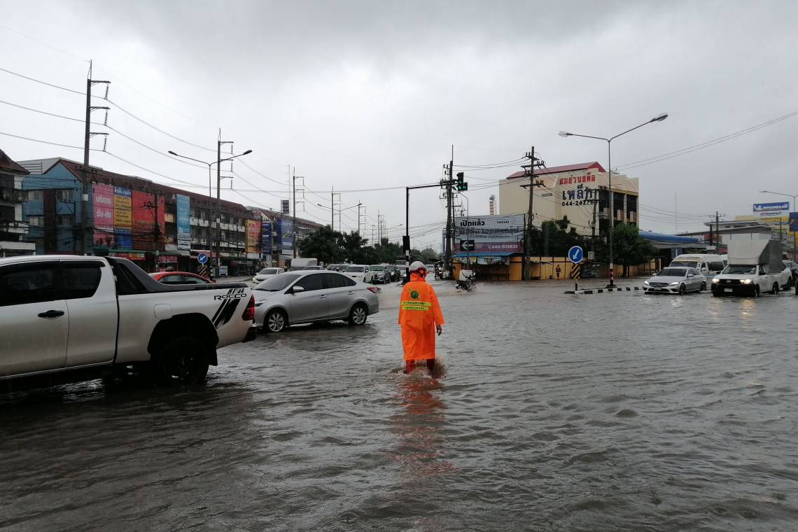 เมื่อเวลา 14.00 น. วันที่ 26 กันยายน ร่องมรสุมเคลื่อนผ่านพื้นที่ จ.นครราชสีมา ทำให้เกิดฝนตกหนักในพื้นที่ อ.เมือง เป็นเวลาประมาณ 40 นาที ส่งผลให้มวลน้ำฝนจากด้านทิศตะวันตกไหลบ่าท่วมขังบนทางหลวงหมายเลข 224 ถ.ราชสีมา-โชคชัย ระดับน้ำสูงประมาณ 30-40 เซนติเมตร เป็นระยะทางยาวกว่า 50 เมตร ส่งผลกระทบต่อการสัญจรของบรรดาประชาชน เนื่องจากเป็นเส้นทางหลักเข้าสู่เขตเมือง นครราชสีมา ซึ่งมียานพาหนะขนาดเล็กและรถจักรยานยนต์ไม่สามารถลุยผ่านกระแสน้ำที่ไหลเข้าตัวเครื่องทำให้รถเสียหลายคัน เจ้าหน้าที่ตำรวจจราจร สภ.เมือง นครราชสีมา ต้องคอยออกมาให้อำนวยความสะดวก โดยใช้สัญญาณมือแทนสัญญาณไฟจราจรชั่วคราว จนกระทั่งเวลาประมาณ 60 นาที ระดับน้ำได้เริ่มลดลงเข้าสู่ภาวะปกติ