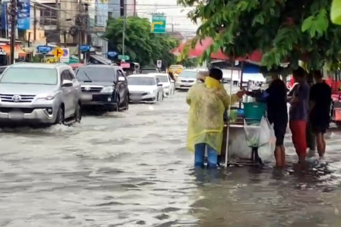 เมื่อเวลา 13.00 น. วันที่ 27 ก.ย.65 ผู้สื่อข่าวรายงานว่า ที่ถนนนวลจันทร์ แขวงนวลจันทร์ เขตบึงกุ่ม มีสภาพน้ำท่วมขัง หลังจากที่ฝนตกลงมาต่อเนื่องนาน 1 ชั่วโมง จนมีปริมาณน้ำท่วมขังสูงสุดอยู่ที่ประมาณ 30 เซนติเมตร ตลอดทั้งถนนนวลจันทร์ มีปริมาณน้ำท่วมขังตลอดสาย ทำให้รถยนต์ขนาดเล็กเบี่ยงมาใช้ช่องทางขวาช่องทางเดียวจึงทำให้การจราจรติดขัด