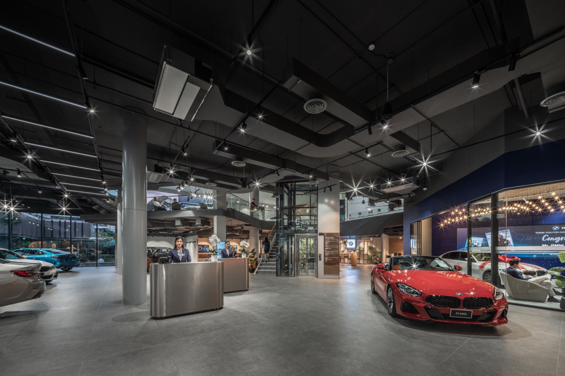 โดยเริ่มจากการออกแบบโชว์รูมสุดล้ำ ซึ่งเป็นแห่งแรกในระดับเอเชียตะวันออกเฉียงใต้ ที่มีคอนเซ็ปต์ด้านการขายใหม่ (Retail Next) พร้อมตีโจทย์สู่การก่อสร้างอาคารที่สัมผัสได้จริง โดดเด่นสะดุดตาด้วยรูปลักษณ์ภายนอกทันสมัย กับดีไซน์ส่วนหน้าของอาคาร (Architectural Façade) ที่ออกแบบเป็นกล่องกระจกใส และระนาบแนวนอนขนาดใหญ่ เหมือนกำลังลอยเคลื่อนออกจากกัน (Floating Box) ช่วยขยายการมองเห็นของอาคารได้เต็มหน้ากว้างถนน และแบ่ง Façade ออกเป็น 3 หน้าต่างย่อย ตามกลุ่มรถที่ต่างกัน ส่งผลให้แต่ละโซนโดดเด่นน่าสนใจ