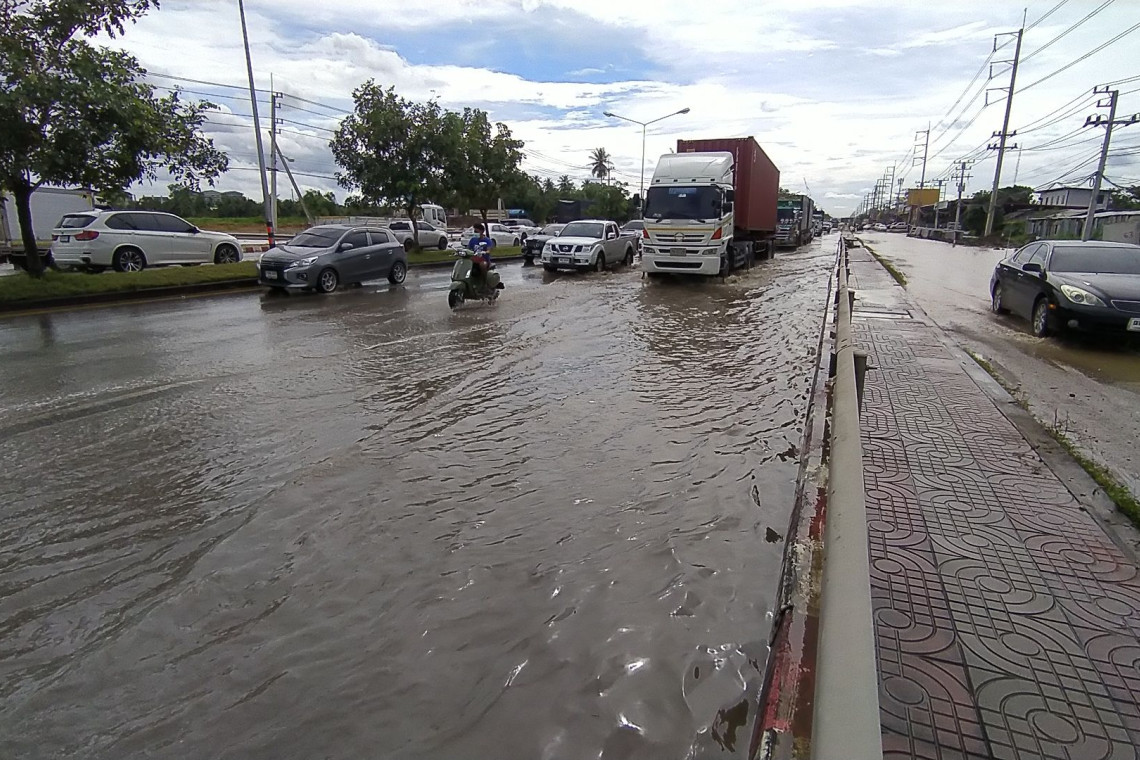 น้ำทะเลหนุนสูง ถนนปิ่นเกล้า-นครปฐม น้ำท่วมขังจราจรติดขัด น้ำเอ่อล้นท่วมถนนสายปิ่นเกล้า-นครปฐมช่วงข้ามสะพานข้ามแม่น้ำท่าจีน(สะพานแพชวัล)รถติดสะสมหวั่นเย็นนี้เลิกงานจราจรติดขัด
