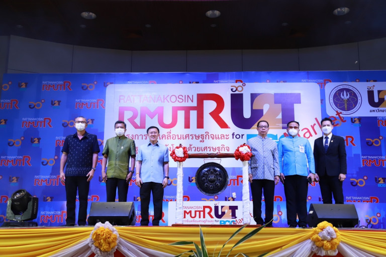 สำหรับโครงการตลาดนัดผลผลิตจากตำบลสู่ประชาคมอย่างยั่งยืนแห่งมหาวิทยาลัยเทคโนโลยีราชมงคลรัตนโกสินทร์ ภายใต้โครงการขับเคลื่อนเศรษฐกิจและสังคมฐานรากหลังโควิดด้วยเศรษฐกิจ BCG(RMUTR U2T for BCG Market) ทางมหาวิทยาลัยเทคนโลยีราชมงคลรัตนโกสินทร์ได้รับมอบหมายให้ดูแลโครงการขับเคลื่อนเศรษฐกิจและสังคมฐานรากหลังโควิดด้วยเศรษฐกิจ ด้วยเศรษฐกิจ BCG (U2T for BCG) ให้เป็นที่ประจักษ์ โดยมีตัวแทนชุมชนเข้าร่วมจำนวน 150 คน นำเสนอผลิตภัณฑ์ จำนวน 113 ผลิตภัณฑ์ เพื่อเปิดโอกาสในการสร้างรายได้จากสินค้าและผลิตภัณฑ์ ด้วยการเพิ่มช่องทางการจำหน่ายสินค้า สู่ตลาดผู้บริโภคโดยตรงเพื่อนำองค์ความรู้จากมหาวิทยาลัยไปช่วยเพิ่มศักยภาพของสินค้าและบริการขับเคลื่อนพัฒนาเศรษฐกิจฐานราก ยกระดับรายได้ให้ประชาชน ณ หอประชุมบัวสวรรค์ 1,500 ที่นั่ง มหาวิทยาลัยเทคโนโลยีราชมงคลรัตนโกสินทร์ ศาลายา