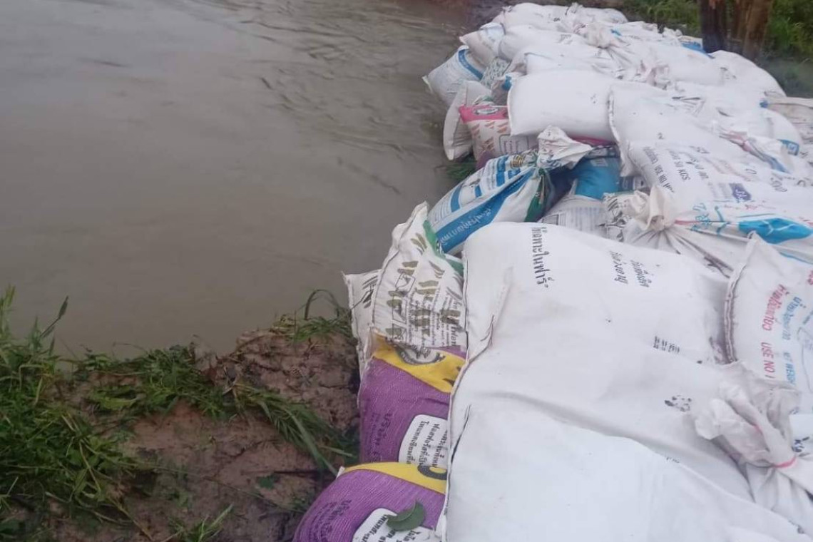 วันที่ 3 ก.ย.ที่ อ.ศีขรภูมิ จ.สุรินทร์ นายอภิวัฒน์จันทร์สุข ผู้ใหญ่บ้านก้านเหลือง หมู่ 3 มีความห่วงใยต่อพี่น้องประชาชนหมู่บ้านทุ่งราม ซึ่งอยู่ใกล้ต้นน้ำลำธาร เปิดเผยว่าเมื่อวานได้รับแจ้งจากกำนันตำบลผักไหม ให้ประกาศเสียงตามสายแจ้งเตือนพี่น้องประชาชนให้เก็บทรัพย์สินมีค่าและสิ่งของขึ้นสู่ที่สูงและเคลื่อนย้ายผู้ป่วยติดเตียงไปพักที่เทศบาลเนื่องจากเกรงว่าผนังกั้นน้ำที่ถูกมวลน้ำเซาะอาจพังทลายเข้าร่วมดำเนินประชาชนได้ ด้วยความห่วงใยตนพร้อมชาวบ้านร่วมฝาก 200 คนทั้งหญิงและชายร่วมกันกรอกทรายใส่ถุงกว่า 500 กระสอบ