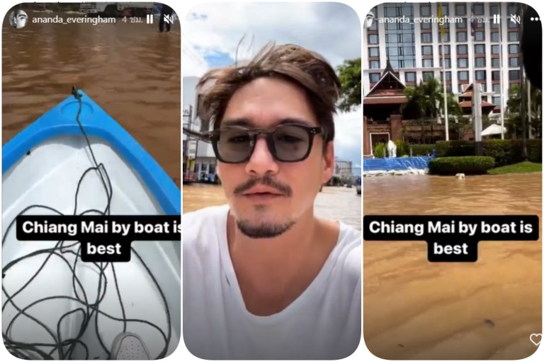 โดยเจ้าตัวโพสต์ คลิปวิดีโอผ่านอินสตาแกรมสตอรี่ @ananda_everingham เผยให้เห็นภาพน้ำท่วมขังในจังหวัดเชียงใหม่ รวมถึงบริเวณหน้าโรงแรมที่พักที่เจ้าตัวกำลังจะเดินทางเข้าไปพัก แต่ตอนนี้ไม่สามารถเดินหรือโดยสารด้วยรถยนต์เข้าไปได้ เนื่องจากมีน้ำท่วมสูง ต้องเดินทางเข้าออกโดยเรือเท่านั้น