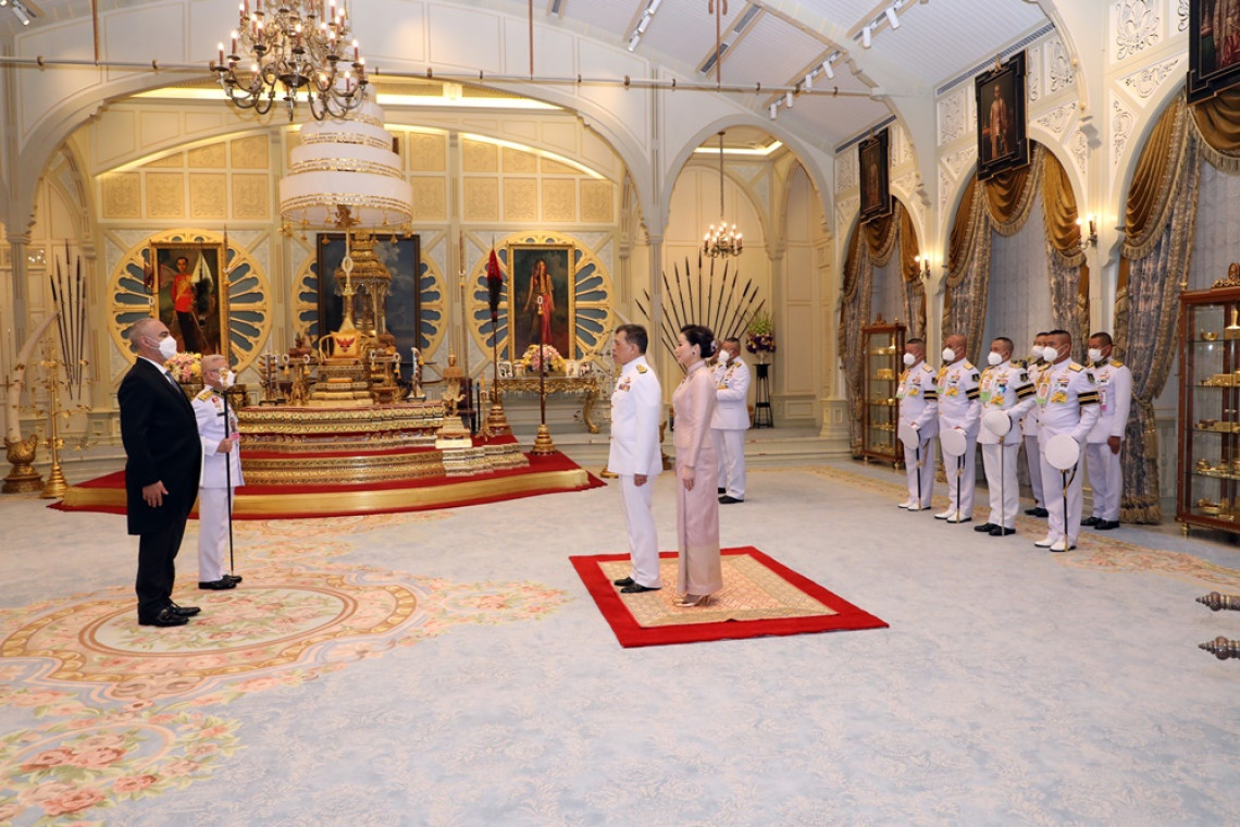 วันนี้ (3 ต.ค. 65) เวลา 17.24 น. พระบาทสมเด็จพระเจ้าอยู่หัว และสมเด็จพระนางเจ้า ฯ พระบรมราชินี เสด็จออก ณ พระที่นั่งอัมพรสถาน พระราชวังดุสิต พระราชทานพระบรมราชวโรกาสให้ เอกอัครราชทูตต่างประเทศประจำประเทศไทย เฝ้าทูลละอองธุลีพระบาท ถวายพระราชสาส์นตราตั้ง และอักษรสาส์นตราตั้ง ตามลำดับดังนี้