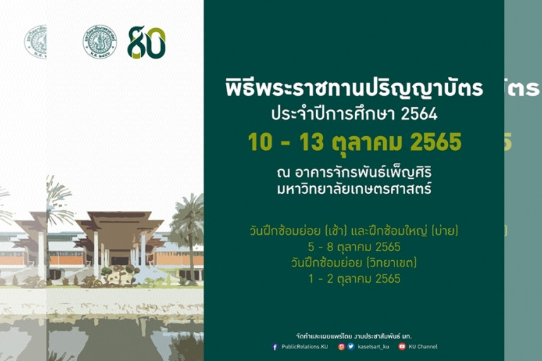 อนึ่งในวันที่ 5-8 ตุลาคม 2565 จะจัดการฝึกซ้อมใหญ่พิธีพระราชทานปริญญาบัตรแก่ผู้สำเร็จการศึกษาจากมหาวิทยาลัยเกษตรศาสตร์ ประจำปีการศึกษา 2564 ณ อาคารจักรพันธ์เพ็ญศิริ มหาวิทยาลัยเกษตรศาสตร์ โดยในวันที่ 5 ตุลาคม 2565 เป็นวันฝึกซ้อมใหญ่ให้กับบัณฑิตที่จะเข้ารับพระราชทานปริญญาบัตรในวันที่ 13 ตุลาคม 2565