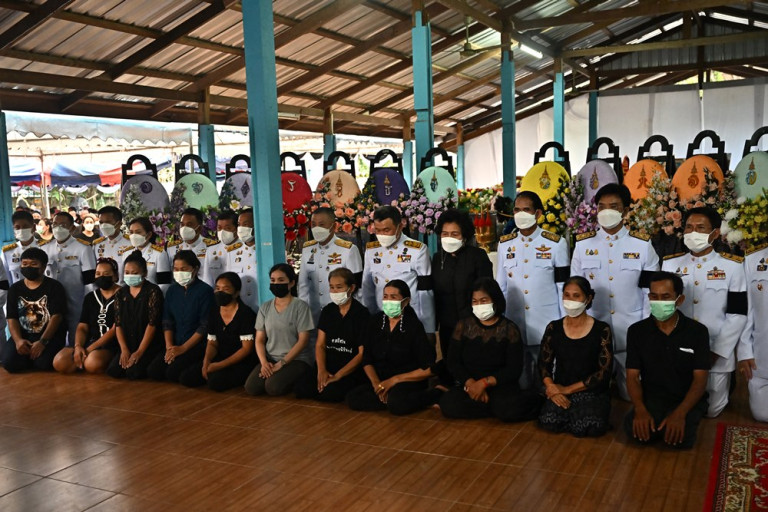 ที่วัดศรีอุทัย บ้านท่าอุทัย ต.อุทัยสวรรค์ อ.นากลาง จ.หนองบัวลำภู เมื่อวันที่ 8 ต.ค.65 พระบาทสมเด็จพระเจ้าอยู่หัว โปรดเกล้าฯ ให้ นายสุทธิพงษ์ จุลเจริญ ปลัดกระทรวงมหาดไทย เป็นผู้แทนพระองค์ อัญเชิญน้ำหลวงอาบศพ และเชิญพวงมาลาหลวง พระบาทสมเด็จพระเจ้าอยู่หัว พวงมาลา สมเด็จพระนางเจ้าสิริกิติ์ พระบรมราชินีนาถ พระบรมราชชนนีพันปีหลวง พวงมาลา สมเด็จพระนางเจ้าสุทิดา พัชรสุธาพิมลลักษณ พระบรมราชินี พระราชทานวางหน้าหีบศพผู้เสียชีวิตในพิธีบำเพ็ญกุศล จากเหตุโศกนาฏกรรมกราดยิงศูนย์ศูนย์พัฒนาเด็กเล็ก ต.อุทัยสวรรค์ จ.หนองบัวลำภู