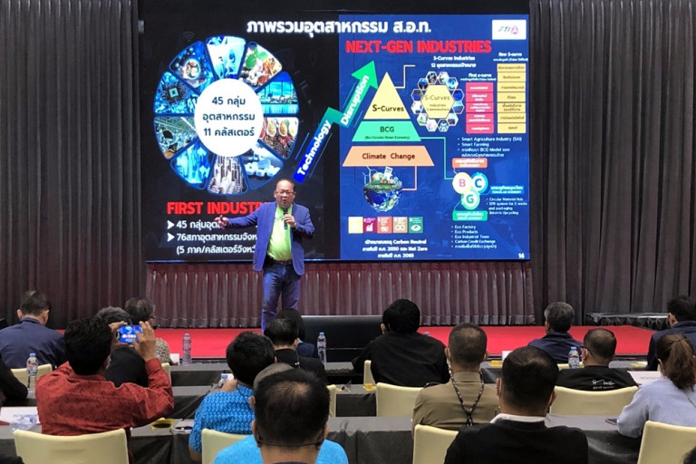 ดร.สาโรจน์ วสุวานิช ประธานสภาอุตสาหกรรมภาคตะวันออก กล่าวว่า ปัจจุบัน ภาคอุตสาหกรรม ต้องมีการปรับตัวและพัฒนาตนเองสู่ความยั่งยืน ทั้งการมุ่งสู่การเป็นโรงงานอุตสาหกรรมเชิงนิเวศ (Eco Factory) การพัฒนานิคมอุตสาหกรรมเชิงนิเวศ (Eco Industrial Town) เพื่อให้มีการใช้ทรัพยากรและพลังงานอย่างมีประสิทธิภาพ การเตรียมความพร้อมในการประเมินคาร์บอนฟุตพริ้นท์เพื่อหาปริมาณการปล่อยก๊าซเรือนกระจกจากการดำเนินกิจการ และพัฒนาแนวทางลดการปล่อยก๊าซเรือนกระจก รวมทั้งการผลิต ผลิตภัณฑ์ที่เป็นมิตรกับสิ่งแวดล้อม (Eco-products) ที่สามารถส่งเสริมและสนับสนุนภาคส่วนอื่นๆ ที่เกี่ยวข้อง เพื่อช่วยกันลดการปล่อยก๊าซเรือนกระจกตลอดทั้ง Supply chain ที่นอกเหนือจากภาคอุตสาหกรรมได้