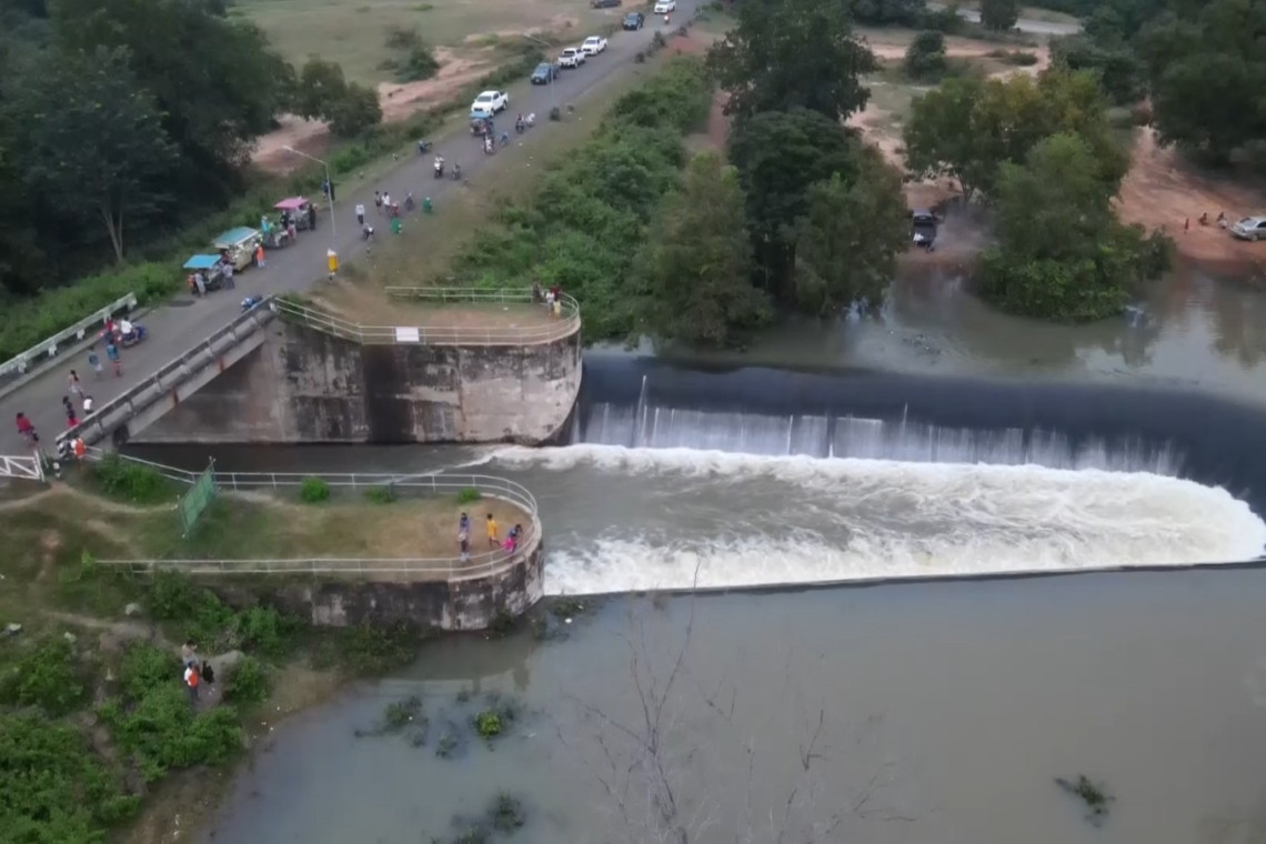 น้ำล้นสปิลเวย์เขื่อนลำนางรอง อ.โนนดินแดง จ.บุรีรัมย์ หลังฝนตกต่อเนื่องสะสมในป่าเขาไหลรวมเข้าเขื่อน ชาวบ้านแห่ดูผวาทะลักท่วมหมู่บ้านซ้ำรอยปี 56 ขณะอ่างเก็บน้ำทั้งจังหวัดมีปริมาณน้ำเกินความจุแล้ว 11 อ่างจากทั้งหมด 16 แห่ง