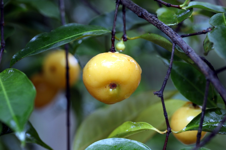 ผลแบบผลมีเนื้อหนึ่งถึงหลายเมล็ด กึ่งรูปทรงกลมหรือรูปทรงกลมแป้น กว้าง 2.8–4.5 ซม. ยาว 2.7–3.8 ซม. มักไม่สมมาตร ไม่เป็นพู (ผลอ่อนเป็นพูตื้นมากหรือเห็นไม่ชัด) ปลายผลมีลักษณะเป็นแอ่ง ผลสีเขียวสุกสีเหลืองอมเขียวอ่อน สุกเต็มที่สีเหลืองสด เกลี้ยง เป็นมัน ผนังผลหนา 4–6.5 มม. ปลายผลมียอดเกสรเพศเมียติดทน สีน้ำตาลเข้ม แบน เส้นผ่านศูนย์กลาง 5–6 มม. เป็นแฉกตื้นตามรัศมี 8–11 แฉก มีปุ่มเล็ก โคนผลมีกลีบเลี้ยงติดทนและขยายใหญ่กว่าในระยะดอก สีเขียวอ่อน ต่อมาเปลี่ยนเป็นสีเหลืองอมเขียวอ่อนและสีเหลืองอ่อนในระยะผลสุก ก้านผลยาว 2–3.5 มม. เส้นผ่านศูนย์กลาง 2–3.5 มม. มีเมล็ด 1–4 เมล็ด สีน้ำตาล แบน รูปไต กว้าง 6–9 มม. ยาว 1.2–1.5 ซม. หนา 2.7–3.8 มม. ปลายมนทั้ง 2 ด้าน เปลือกเมล็ดชั้นนอกเป็นเนื้อนุ่ม สีขาว พบบ่อยที่มีเมล็ดฝ่อ