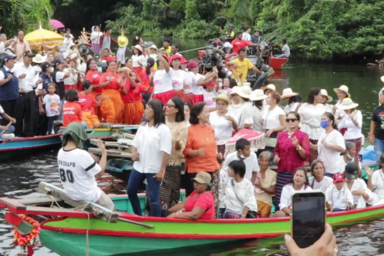 ที่สำคัญจะมีพี่น้องชาวประมงพื้นบ้านที่เป็นชาวไทยมุสลิมจำนวนไม่น้อย นำเรือมาเข้าร่วมขบวนบรรทุกพุทธศาสนิกชนมาส่งยังท่าน้ำของวัด ซึ่งมีการปฏิบัติเป็นประจำเช่นนี้ทุกปี เพื่อร่วมกันรำลึกถึง “พ่อท่านจบ” หรือพระครูธรรมธาราธิคุณ อดีตเจ้าอาวาส พระเถราจารย์หมอแผนโบราณรักษาผู้คนที่กระดูกหักนับหมื่นคน ซึ่งมรณภาพไปแล้วหลายปี เป็นสิ่งยืนยันถึงความรักความสามัคคีของชาวบ้านในย่านนี้มาเป็นเวลานาน