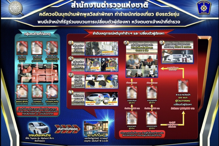 ล่าสุด ที่สำนักงานตำรวจแห่งชาติ พล.ต.อ.ดำรงศักดิ์ กิตติประภัสร์ ผบ.ตร. ได้สั่งการให้ พล.ต.อ.สุรเชษฐ์ หักพาล รอง ผบ.ตร. เร่ง สืบสวนติดตามกลุ่มผู้ก่อเหตุดังกล่าวโดยด่วน เนื่องจากเป็นเหตุอุกฉกรรจ์สะเทือนขวัญ กลุ่มคนร้ายก่อเหตุอย่างอุกอาจและใช้อาวุธปืน พล.ต.อ.สุรเชษฐ์ จึงสั่งการให้ พล.ต.ท.อิทธิพล อิทธิสารรณชัย ผบช.ภ.2 พล.ต.ต.กิตติ์ธเนศ ธนนันท์ทวีสิน ผบก.ภ.จว.ชลบุรี และ พ.ต.อ.กุลชาต กุลชัย ผกก.สภ.เมืองพัทยา เร่งสืบสวนหาสาเหตุในการก่อเหตุดังกล่าวของกลุ่มผู้ต้องหา และนำตัวผู้ก่อเหตุมาดำเนินคดีโดยเร็ว