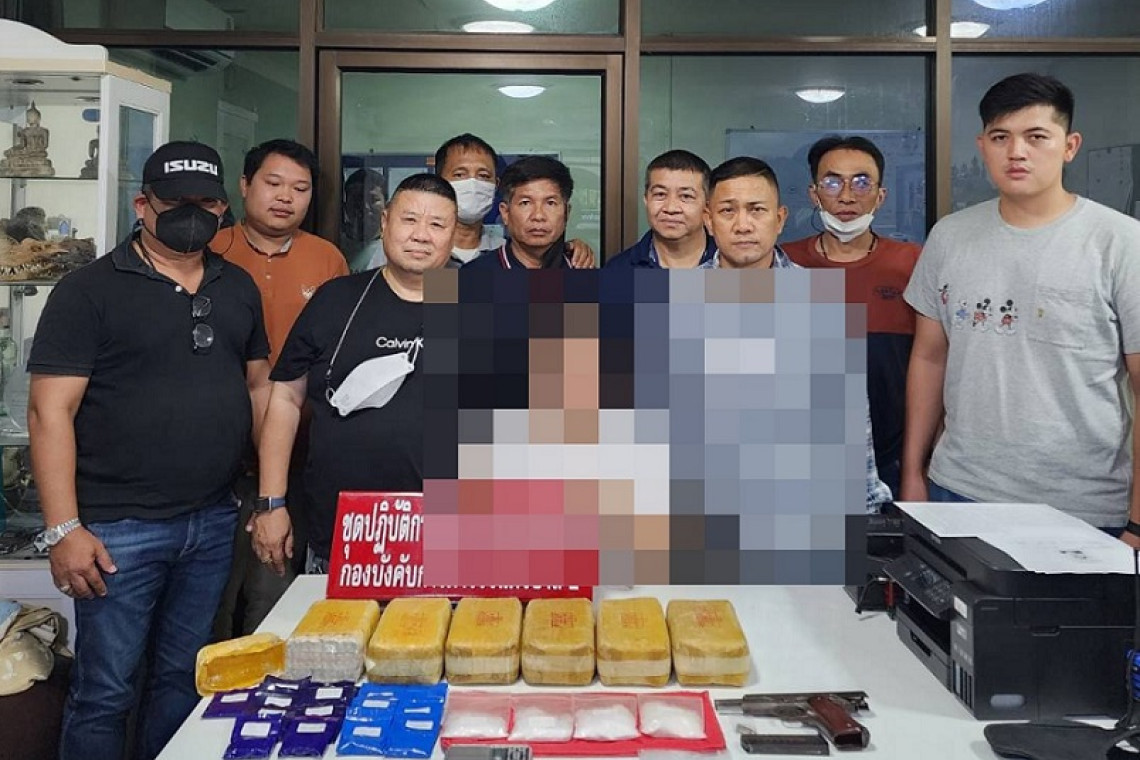 ยาเคตามีน จำนวน 316 กรัม อาวุธปืนสั้นกึ่งอัตโนมัติ ขนาด .38 มม. จำนวน 1 กระบอก พร้อมเครื่องกระสุนขนาด .38 มม.