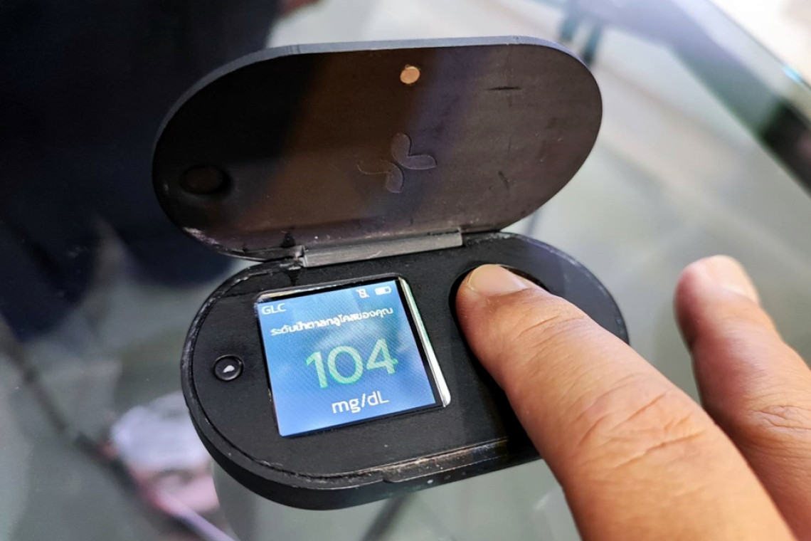 นางสาวชนิดาภา ต้องใจหิรัญ เจ้าของผลงาน กล่าวว่า ในปัจจุบันมีผู้ป่วยโรคเบาหวานจำนวนมาก และผู้ป่วยโรคเบาหวานที่เจาะเลือดเพื่อตรวจหาระดับน้ำตาลจะมีแผลที่หายช้า ดังนั้น จึงได้คิดค้นเครื่องวัดระดับน้ำตาลในเลือดแบบไม่ต้องเจาะเลือดชนิดพกพาขึ้นมา เพื่อช่วยให้ผู้ป่วยเบาหวานลดการบาดเจ็บจากการเจาะเลือด และยังพกพาได้อย่างสะดวกเนื่องจากมีขนาดเล็ก โดยเครื่องดังกล่าวใช้สำหรับผู้ที่ต้องการวัดระดับน้ำตาลในเลือดตั้งแต่ 70-350 มิลลิกรัมต่อเดซิลิตร สามารถวัดระดับน้ำตาลในเลือดได้ เพียงวางนิ้วลงบนเซ็นเซอร์ที่อยู่บนตัวเครื่องสามารถวัดและแสดงผลได้ภายใน 20 วินาที ซึ่งเครื่องวัดจะแสดงผลค่าระดับน้ำตาลในเลือดเป็นตัวเลขผ่านหน้าจอในหน่วยมิลลิกรัมต่อเดซิลิตร (mg/dL)