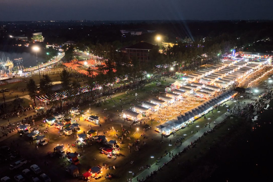 คนขอนแก่นไม่กลัวจันทรุปราคาตามคำเตือนของหมอดู พาครอบครัวออกจากบ้านชมขบวนแห่กระทง และแสงสีของโคมไฟเพ้นท์มือประดับกว่า 14,000 โคม