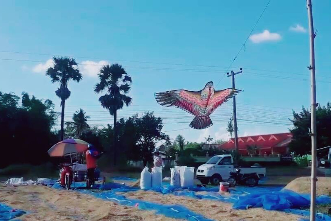 พ.17พ.ย.65/ผู้สื่อข่าวในพื้นที่ได้พบไอเดียเจ๋งของชาวนาคนหนึ่งในหมู่บ้านน้อยสนาม ต.รัตนบุรี อ.รัตนบุรี จ.สุรินทร์ชื่อว่านายบุญเรือง เกษรจันทร์ อายุ54ปี 100หมู่10บ้านน้อยสนาม ต.รัตนบุรี อ.รัตนบุรี จ.สุรินทร์ ผู้ที่ผุดไอเดียสุดเจ๋งเป๋ง นํารูปว่าวพญาเหยี่ยวหรือพญาอินทรีย์ที่ซื้อมาจากพ่อค้าที่นําว่าวเปิดแผงขายข้างถนนในราคาตัวละ60บาท แล้วมาผูกเชือกห้อยติดกับไม้ไผ่ แล้วนํามาปักไว้ข้างๆกองข้าวหรือลานตากข้าวโดยไม่มีแม้แต่นกร่วมทั้งเป็ดไก่ไม่กล้าเข้ามาใกล้เลยแม้แต่ตัวเดียว ชาวบ้านที่ผ่านไปผ่านมาเห็นแล้วทึ้งอึ้งสุดยอดในผลงานต่างบอกว่าจะนําไปลองใช้ดูบ้าง