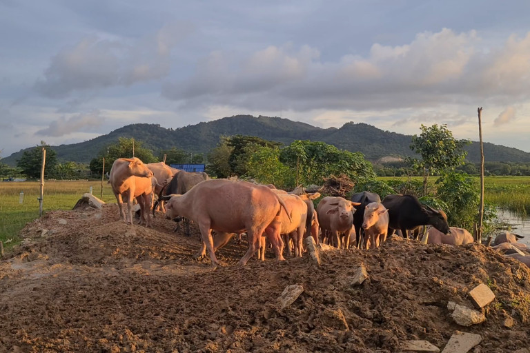 วันนี้(17พ.ย.65)ไปกันที่ทุ่งน้ำน้อย หมู่ 2 ต.น้ำน้อย อ.หาดใหญ่ จ.สงขลา ซึ่งตอนนี้กลายเป็นที่อยู่ของควายฝูงสุดท้ายของพรุน้ำน้อยประมาณ 50ตัว ที่สำคัญเกือบทั้งฝูงเป็นควายเผือกที่ทั้งตัวมีสีขาวอมชมพู แตกต่างจากควายทั่วไปที่ตัวจะออกสีเทาๆดำๆ