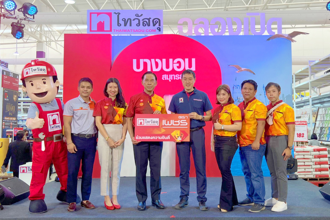 สาธิต สุดบรรทัด ประธานเจ้าหน้าที่บริหาร พิชญานันท์ ล้อวรลักษณ์ ผู้ช่วยประธานเจ้าหน้าที่บริหารสายการขายและการตลาด บริษัท ผลิตภัณฑ์ตราเพชร จำกัด (มหาชน) หรือ DRT ร่วมแสดงความยินดีกับ สุทธิสาร จิราธิวัฒน์ ประธานเจ้าหน้าที่บริหาร บริษัท ซีอาร์ซี ไทวัสดุ จำกัด ผู้บริหารศูนย์รวมสินค้าและวัสดุอุปกรณ์เพื่อการตกแต่งและซ่อมแซมที่อยู่อาศัยอย่างครบวงจร ภายใต้ชื่อ ‘ไทวัสดุ’ เนื่องในโอกาสเปิดให้บริการไทวัสดุสาขาที่ 65 บางบอน จังหวัดสมุทรสาคร เพื่อขยายฐานลูกค้าและตอบสนองความต้องการใช้สินค้าวัสดุก่อสร้างและซ่อมแซมที่อยู่อาศัยในจังหวัดสมุทรสาคร