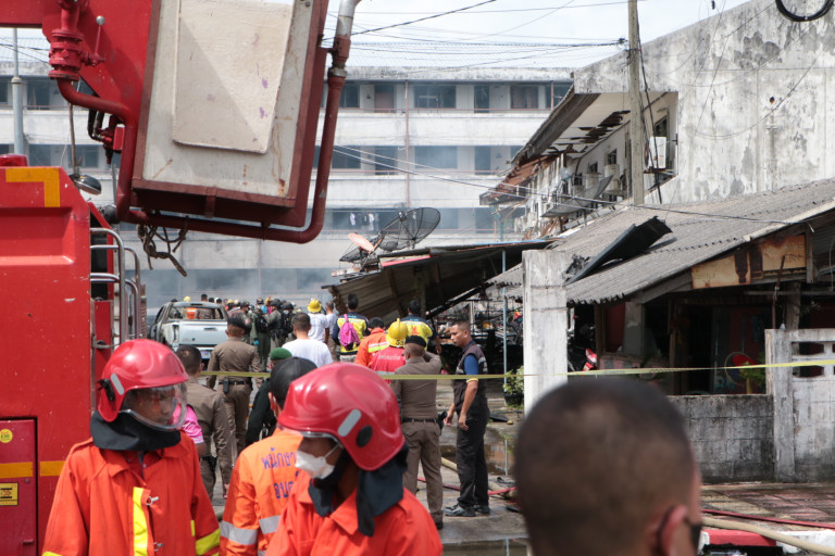 ขณะนี้เจ้าหน้าที่ตำรวจกำลังเข้าไปตรวจสอบจุดเกิดเหตุ รวมถึงสกัดกั้นพื้นที่ไว้แล้ว และมีเจ้าหน้าที่ดำเพลิงเข้าไประงับไฟไหม้ภายในบริเวณจุดเกิดเหตุ ภายในตัวอาคารพังเสียหายยับเยิน เบื้องต้นอยู่ในขั้นตอนการสืบสวน ยังไม่ทราบความสูญเสีย แต่มีเจ้าหน้าที่ตำรวจได้รับบาดเจ็บหลายนาย