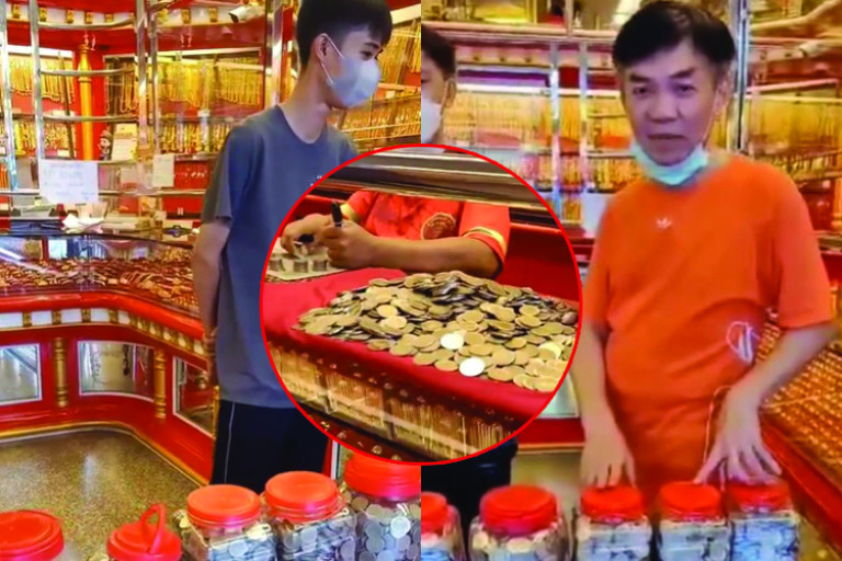 เรียกว่าเป็นอีกคลิปที่ชาวเน็ตต่างชื่นชม เมื่อผู้ใช้ TikTok @ohm…thanadech ได้โพสต์คลิป ภาพขวดโหล 7 จำนวน 7 ขวด ที่ใส่เหรียญ 10 บาท จนเต็ม มายังร้านทอง โดยมีพนักงานร้านทอง กำลังนับเหรียญเป็นจำนวนมาก พร้อมทั้งระบุข้อความว่า “ครูพี่กล้า เก็บเงินเหรียญ 10 บาท นับได้เงินแสน ซื้อทองคำได้ 5 บาท #ร้านทองราชาสกลนคร #เดชน์ลิขิตเทควันโดสกลนคร” และข้อความ วัยรุ่นสร้างตัว เก็บเงินเหรียญ 10 บาท 4 ปี ได้ 120,000 บาท