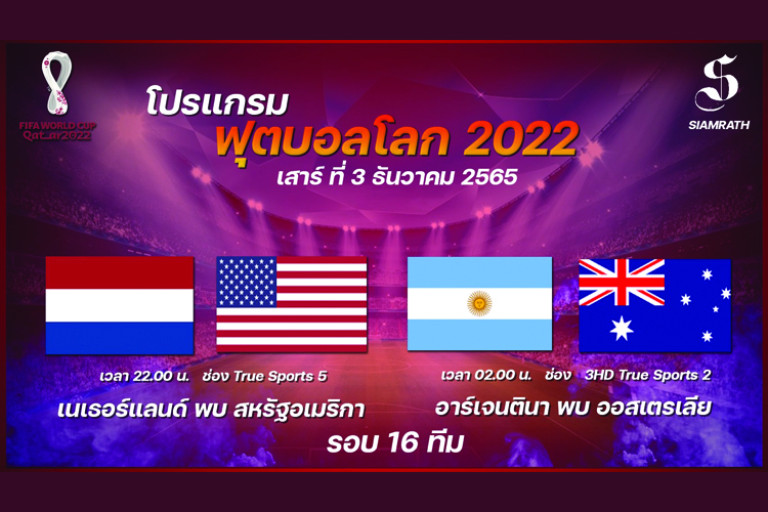 เปิดโปรแกรม ศึก ฟุตบอลโลก 2022 (FIFA World Cup 2022) ที่ประเทศกาตาร์ 2022 รอบ16 ทีมสุดท้าย ประจำวันเสาร์ที่ 3 ธันวาคม 2565 มาดูว่าทีมไหนลงฟาดแข้งกันบ้าง รักทีมไหนเชียร์ทีมใดไปเช็คตารางแข่งขันพร้อมช่องทางการถ่ายทอดสดได้เลยครับ