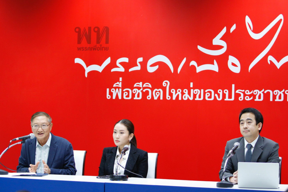 วันที่ 7 ธ.ค. 65 ที่พรรคเพื่อไทย น.ส.แพทองธาร ชินวัตร ปธ.คณะที่ปรึกษาด้านการมีส่วนร่วมและนวัตกรรม หัวหน้าครอบครัวเพื่อไทย พร้อมด้วย นพ.พรหมินทร์ เลิศสุริย์เดช ประธานคณะทำงานนโยบาย ดร.เผ่าภูมิ โรจนสกุล รองเลขาธิการพรรค ร่วมแถลงข่าวกรณีการแสดงวิสัยทัศน์รัฐบาลเพื่อไทยในปี 2570 ประเด็นนโยบายการปรับขึ้นค่าแรงขั้นต่ำ 600 บาทต่อวัน และเงินเดือนผู้จบการศึกษาปริญญาตรี 25,000 บาท