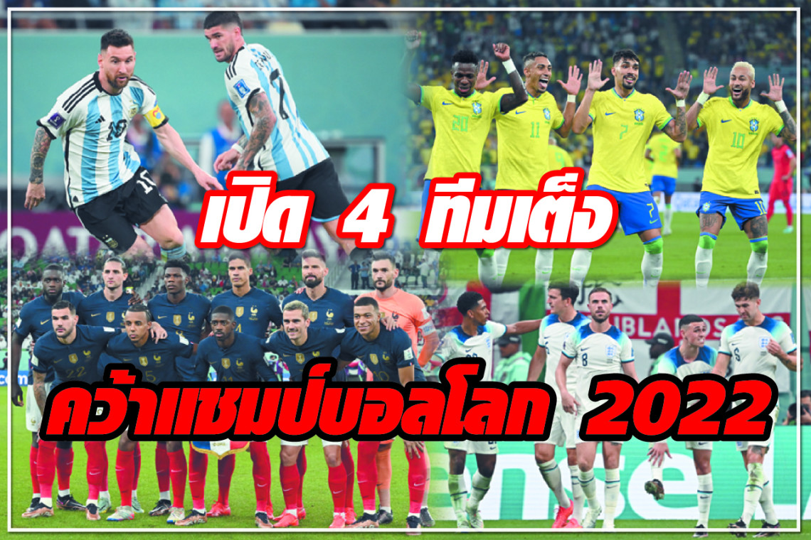 เข้าสู่ "โค้งสุดท้าย" แล้ว สำหรับศึกฟุตบอลโลก 2022 ที่ประเทศกาตาร์ เป็นรอบ 8 ทีมสุดท้าย ที่จะแข่งขันระหว่างวันที่ 9-10 ธ.ค.นี้ โดยมีทีมที่ผ่านเข้ารอบมาได้แก่ เนเธอร์แลนด์, อังกฤษ, โครเอเชีย, โมร็อกโก, อาร์เจนตินา, ฝรั่งเศส, บราซิล และโปรตุเกส