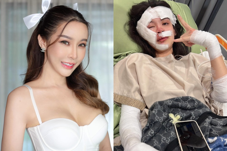 นาทีที่เห็นคือใจลงไปอยู่ตาตุ่ม สงสารจับใจ ตอนนี้คือ มีเลือดออกตรงโพรงไซนัส กระดูกหน้าแตกหลายตำแหน่ง มีแผลที่หน้าเป็นรูลึก เย็บ14เข็ม ละเป็นแผลเต็มตัว ตอนนี้อยู่ไอซียู รอดูอาการต่อไป ตอนนี้พูดคุยตอบโต้ได้ปกติ แต่เจ็บแผล