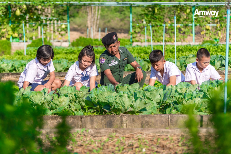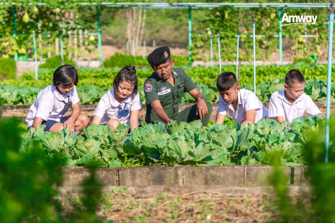 โดยแอมเวย์ได้นำความเชี่ยวชาญด้านการดูแลสุขภาพมาสนับสนุนความรู้ด้านโภชนาการร่วมกับที่ผู้เชี่ยวชาญ พร้อมเชิญกูรูด้านการทำเกษตรผสมผสานแบบปลอดภัยต่อสุขภาพและกูรูด้านการส่งเสริมพัฒนาการเด็กมาร่วมแบ่งปันองค์ความรู้ให้แก่คุณครูโรงเรียนตำรวจตระเวนชายแดนและผู้นำชุมชน เพื่อนำความรู้ไปปรับใช้กับแผนงานของโรงเรียน ช่วยให้โรงเรียนดูแลตัวเองต่อได้อย่างยั่งยืน