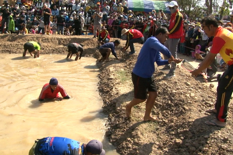 ส่วนไฮไลท์ ของงานในวันนี้ ( 18 ธันวาคม 2565) เริ่มตั้งแต่ เวลา 10..00 น.ที่บ่อน้ำชั่วคราวหน้าที่ว่าการอำเภอชุมพลบุรี นางสาววันเพ็ญ หาญเสมอ นายอำเภอชุมพลบุรี ได้เปิดกิจกรรมแข่งขันจับปลาไหล ที่ทุกคนรอคอยมีทั้ง ประเภททีม บุคคล ชาย หญิง จาก 10 ตำบล ในพื้นที่ อ.ชุมพลบุรี โดยทีมชายในรอบแรกตัวปลาไหล ได้เท่ากัน 2 ตำบล ตำบลกระเบื้อง กับตำบลไพรเขลา จับได้ ตำบลละ 10 ตัว ต้องแข่งกันใหม่ อีกรอบทีมที่จับได้ เร็วเพิ่นอีก 1 ตัว รวมเป็น 11 ตัว คือตำบลกระเบื้อง เป็นทีมที่จับปลาไหลได้มากที่สุด ขณะที่ทีมหญิง จาก 10 ตำบล ตัวแทนจากตำบลกระเบื้อง นางสาวสกาว ใจดี อายุ 38 ปี สามารถจับปลาไหล ได้มากที่สุด 11 ตัว ชนะเลิศในการจับปลาไหลด้วยมือเปล่าไปครองปีนี้ และนานาชาติ