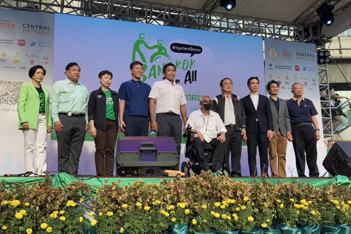 วันที่ 18 ธ.ค.65 นายชัชชาติ สิทธิพันธ์ุ ผู้ว่าราชการกรุงเทพมหานคร ร่วมเปิดงาน Bangkok for All#กรุงเทพฯเพื่อทุกคน พร้อมด้วย นายศานนท์ หวังสร้างบุญ รองผู้ว่าราชการกรุงเทพมหานคร รศ.ดร.ทวิดา กทลเวชช รองผู้ว่าราชการกรุงเทพมหานคร นายต่อศักดิ์ โชติมงคล ประธานที่ปรึกษาผู้ว่าราชการกรุงเทพมหานคร นายภาณุมาศ สุขอัมพร ที่ปรึกษาของผู้ว่าราชการกรุงเทพมหานคร นายแสนยากร อุ่นมีศรี ผู้อำนวยการสำนักพัฒนาสังคม และตัวแทนจากหน่วยงานต่างๆ ทั้งภาครัฐและเอกชน เข้าร่วม ณ ลานกิจกรรมหอศิลปวัฒนธรรมแห่งกรุงเทพมหานคร
