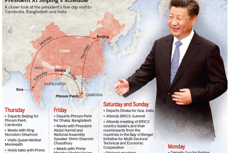 ประธานาธิบดีสี จิ้นผิง ของจีนเปิดเผยว่า จีนได้เตรียมการจะเพิ่มปริมาณการนำเข้า และการค้าที่มีกับกัมพูชาขึ้นอีก และตนก็ตั้งตารออย่างยิ่งที่จะได้เยือนกัมพูชาครั้งแรกในฐานะประธานาธิบดี โดยก่อนหน้าการเยือนของผู้นำจีน บริษัทต่างๆ จากทั้ง 2 ประเทศได้มีการลงนามในข้อตกลงการค้าจำนวน 8 ฉบับ มูลค่า 62 ล้านดอลลาร์สหรัฐฯ เมื่อวันอังคารที่ผ่านมา พร้อมกันนี้ ผู้นำจีนยังกล่าวว่า จีนจะให้การสนับสนุนอย่างเต็มที่ต่อกัมพูชาในด้านความมั่นคงภายใน และการเร่งการพัฒนาด้านเศรษฐกิจ