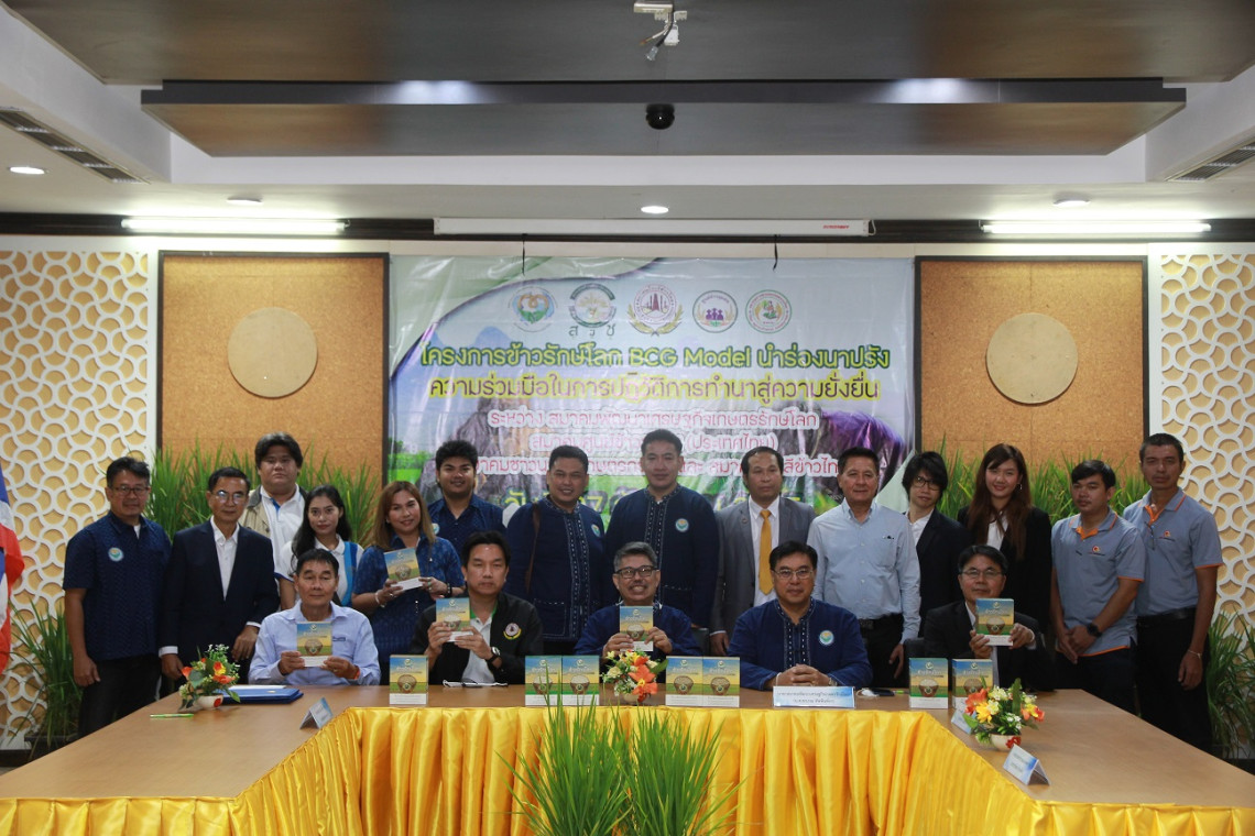 สมาคมต่างๆประกอบด้วย สมาคมพัฒนาเศรษฐกิจเกษตรรักษ์โลก สมาคมโรงสีข้าวไทย กรรมการกลางศูนย์บริหารจัดการข้าวครบวงจร สมาคมชาวนาและเกษตรกรไทย (สมาคมศูนย์ข้าวชุมชน ) ร่วมกันแถลงข่าวโครงการข้าวรักษ์โลก BCG Model (นาปรัง) ต่อยอดศูนย์ข้าวชุมชน สู่ศูนย์บริหารจัดการข้าวชุมชนระดับตำบล จำนวน 10 โครงการ ต่อจังหวัด จำนวน 10 จังหวัด รวม 100 โครงการ