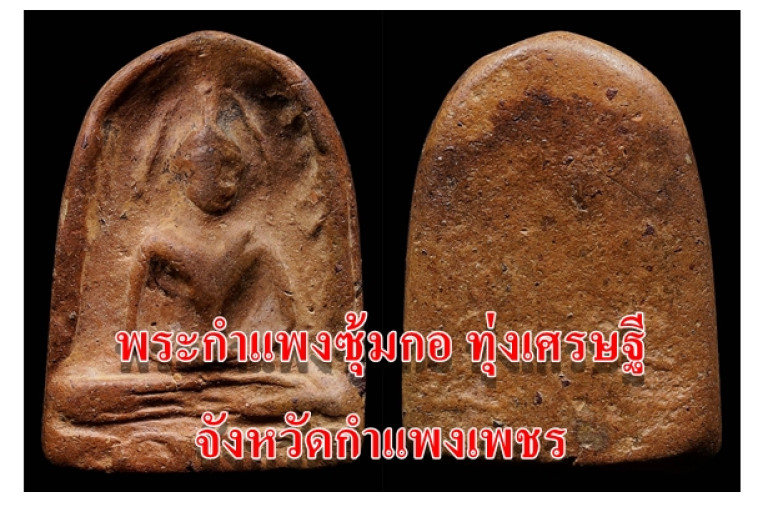 พระกำแพงซุ้มกอ จ.กำแพงเพชร หนึ่งในห้าพระเครื่องชุด “เบญจภาคี” มีการขุดค้นพบในฐานพระเจดีย์บริเวณ ลานทุ่งเศรษฐี จังหวัดกำแพงเพชร ซึ่งในอดีตเป็นที่ตั้งของวัดวาอารามมากมาย แต่ ณ ปัจจุบันกลายเป็นทุ่งร้าง คงเหลือซากปรักหักพังของศาสนวัตถุให้เห็นไม่มากนัก พระพิมพ์ที่พบเป็นพระเนื้อดินเผาที่มีเอกลักษณ์เฉพาะของเนื้อดินคือ มีความละเอียดมากและอ่อนนุ่มมากเหมือนกับเนื้อดินดิบ นอกจากนี้ จะปรากฏเม็ดสีแดงเล็กๆ อยู่เป็นบางจุดขององค์พระเรียกกันว่า “ว่านดอกมะขาม” เนื่องจากสีแดงคล้ายเม็ดมะขาม สันนิษฐานว่าน่าจะเป็นแร่ธาตุบางชนิดมากกว่า เพราะถ้าเป็นเนื้อว่านตามที่เรียก เมื่อได้รับความร้อนจะต้องถูกเผากลายเป็นโพรงอากาศ ไม่ติดแน่นอยู่กับองค์พระเช่นนี้